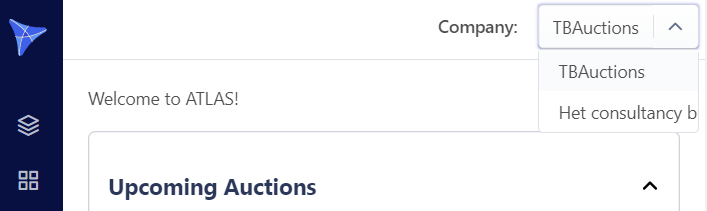 In ATLAS, users can be added to multiple companies. If you’re linked to more than one company, you can easily switch between them to access data about each company and its auctions.