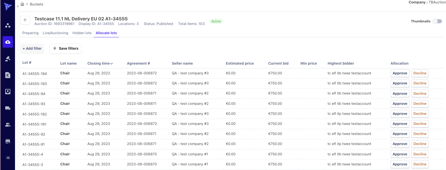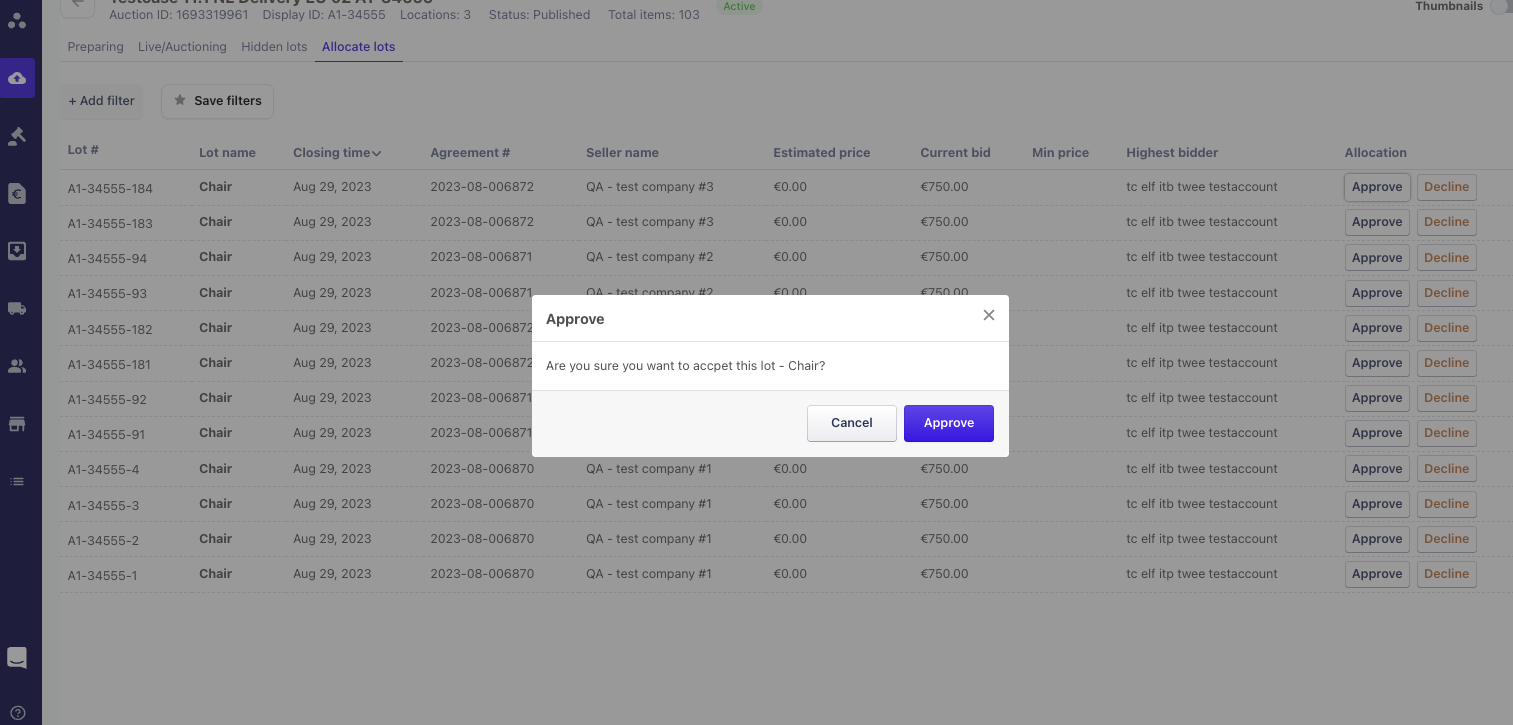 Approve or decline lots in the auction. Once you have approved the lots, they'll arrive in the buyers checkout.