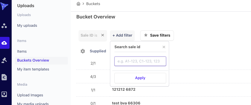 Search for the auction by adding a filter, sales id/ auction display id/ title to locate the auction.