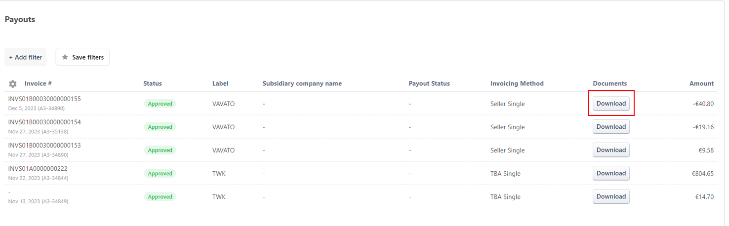 - Downloading buyer invoices for a selected date range (Invoicing on behalf of...)