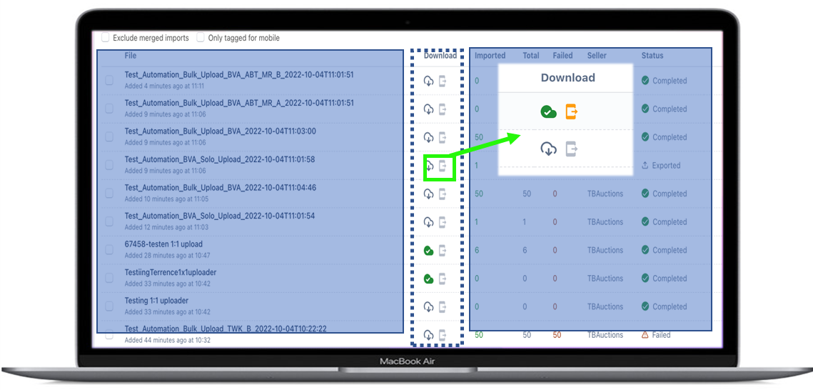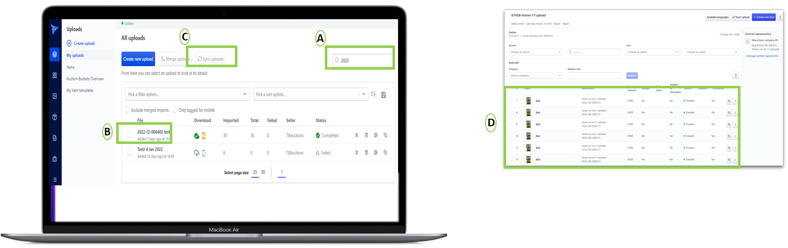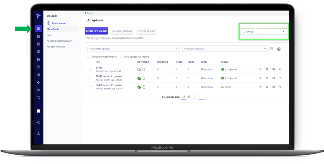 a) Click Sync upload / sync this import. This will ensure that all lots are displayed