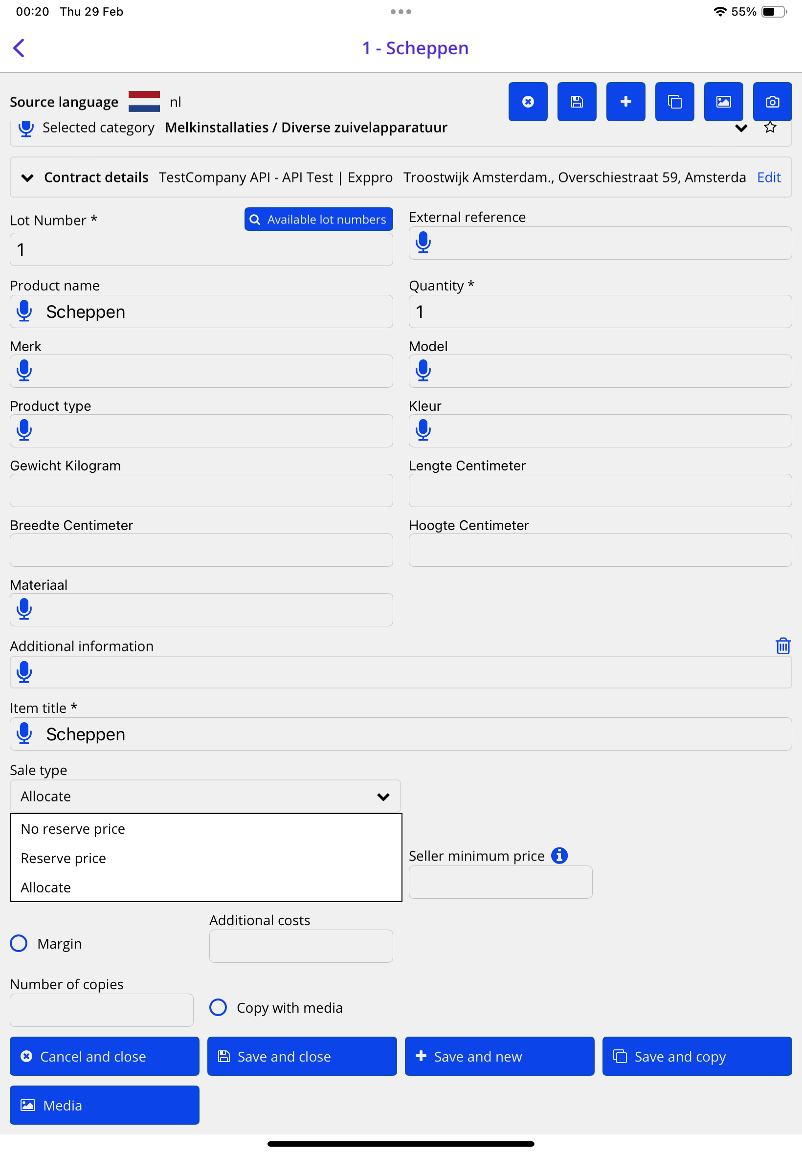 d) Select 'Sale Type' (No Reserve Price, Reserve Price, Allocation). Learn more about sales types here.