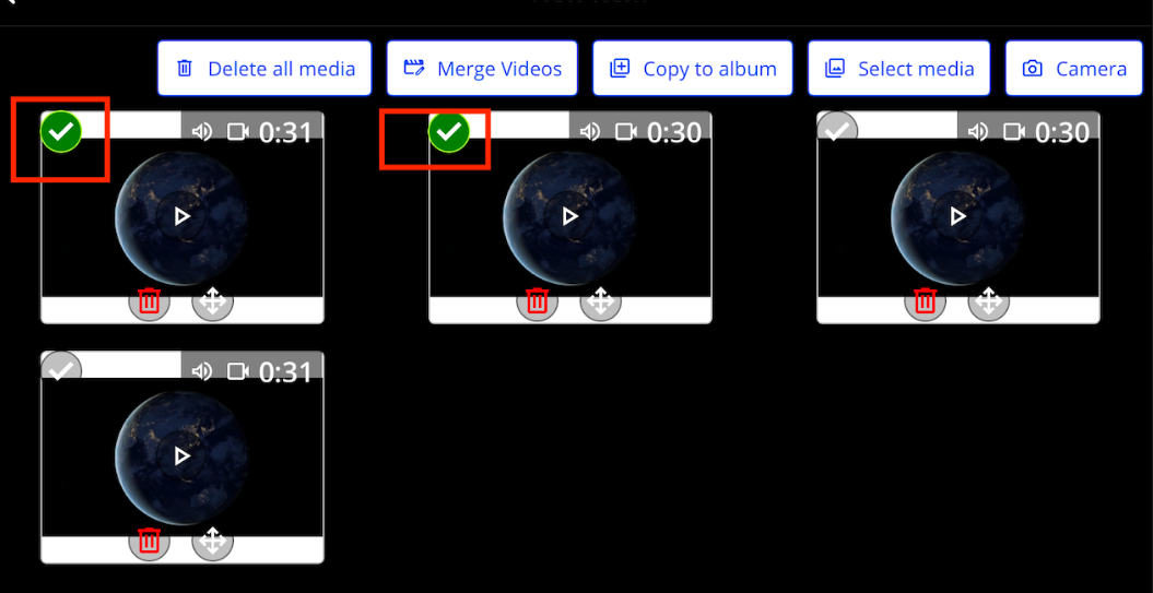 - When recording videos in the app, an overview of the videos will be displayed. Select the video you want to add to the lot, as shown above.