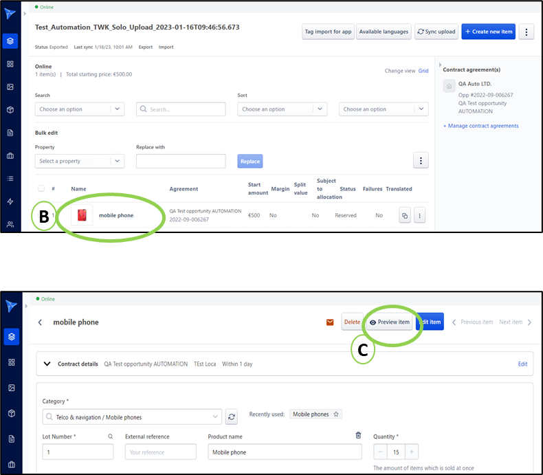 a) Open ATLAS > Uploads > My uploads > find your auction