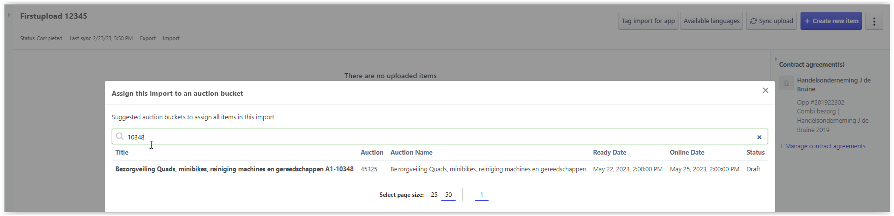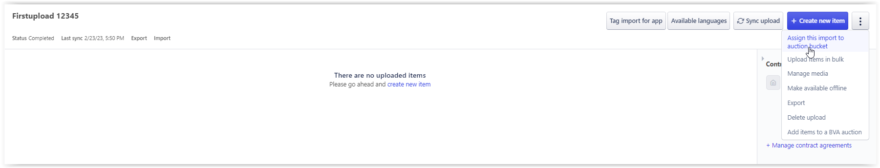 c) Click Assign this import to auction bucket