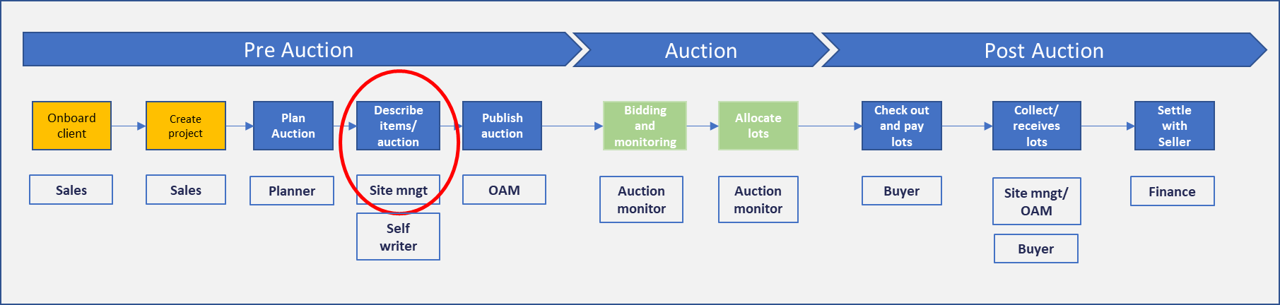 Once the lots are in the appropriate bucket, the auction manager can send them to the auction.