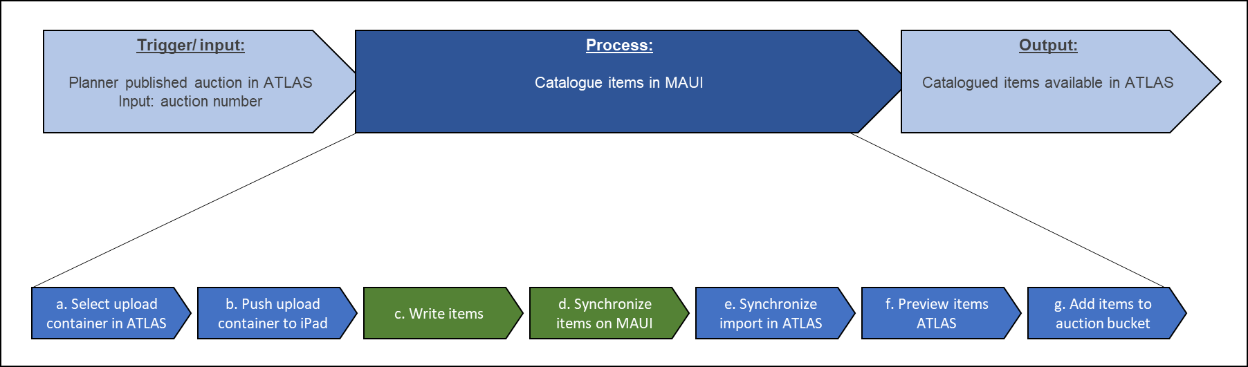 When the auction planner plans and publishes auctions in ATLAS, they create an 'upload' and the process of cataloguing items can begin.