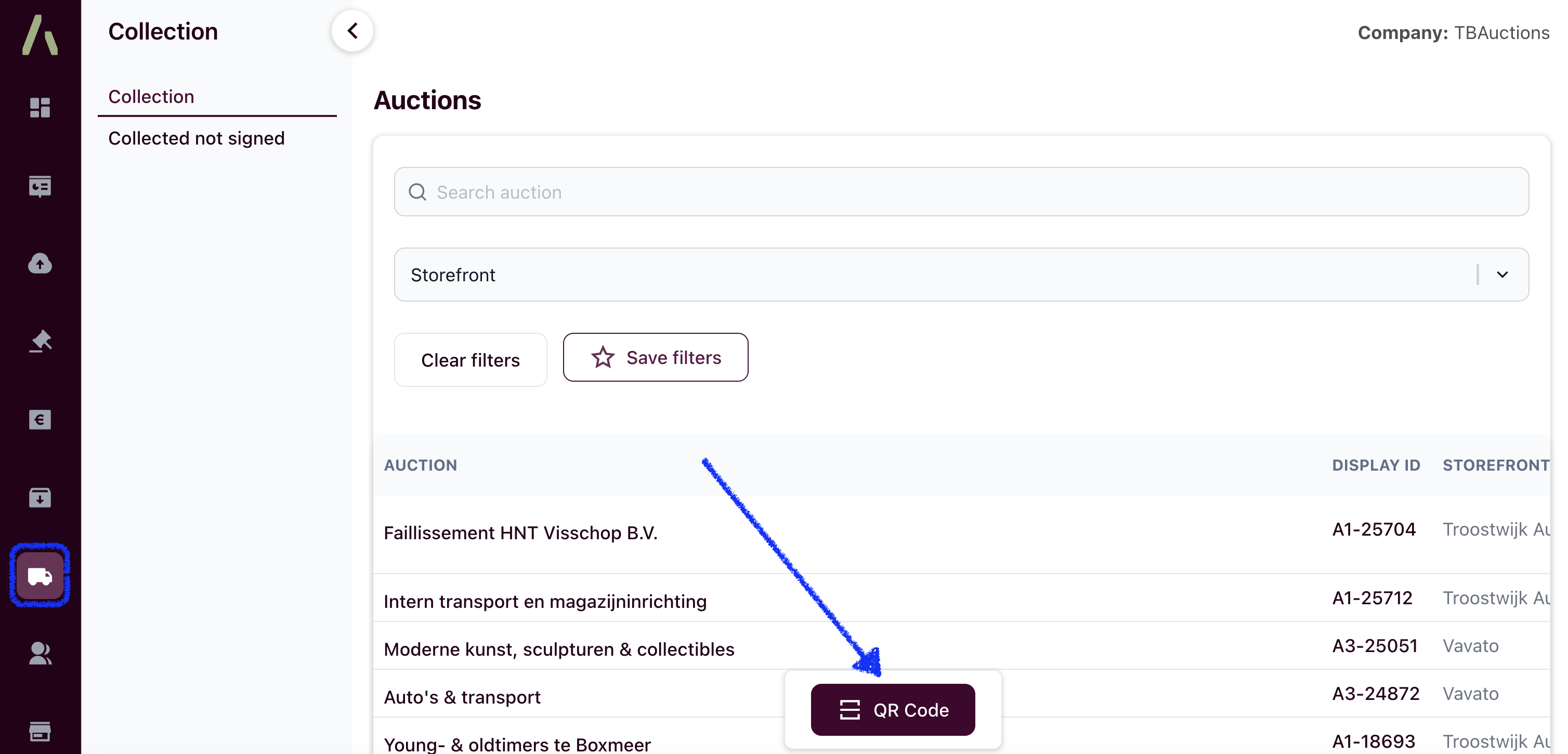 If the buyer does not bring the invoice with the QR code to collect their won lot(s), the seller can search for the buyer using the ATLAS collection feature.